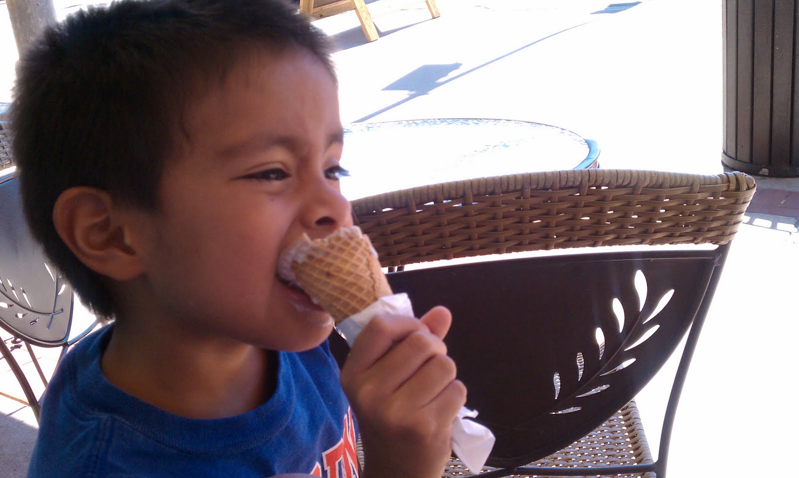 In the morning before going to work, Daddy when you get home will you play Star Wars with me? When I get home, before closing the door behind me, same question. He's really been wanting to go bike riding but usually ask immediately after I've returned from a 30 to 40 mile ride as I'm sprawled on the floor under the ceiling fan. Needless to say, due to the timing, I have to decline. So yesterday morning he asked and I immediately said yes, to which he lit up and added, can it just be you and me and not number 5 too? So off we went, just the two of us. E loves to discuss what he will do when he grows up, so we spend a lot of time talking about his grownup dreams, like having his own house he shares with his brother, being able to drive to the playground on his own, whenever he wants, and other "dreamy" ideas. He was sufficiently worn out after what was a fairly lengthy ride for him. It never hurts to take a pit stop for ice cream in the middle though to refuel.